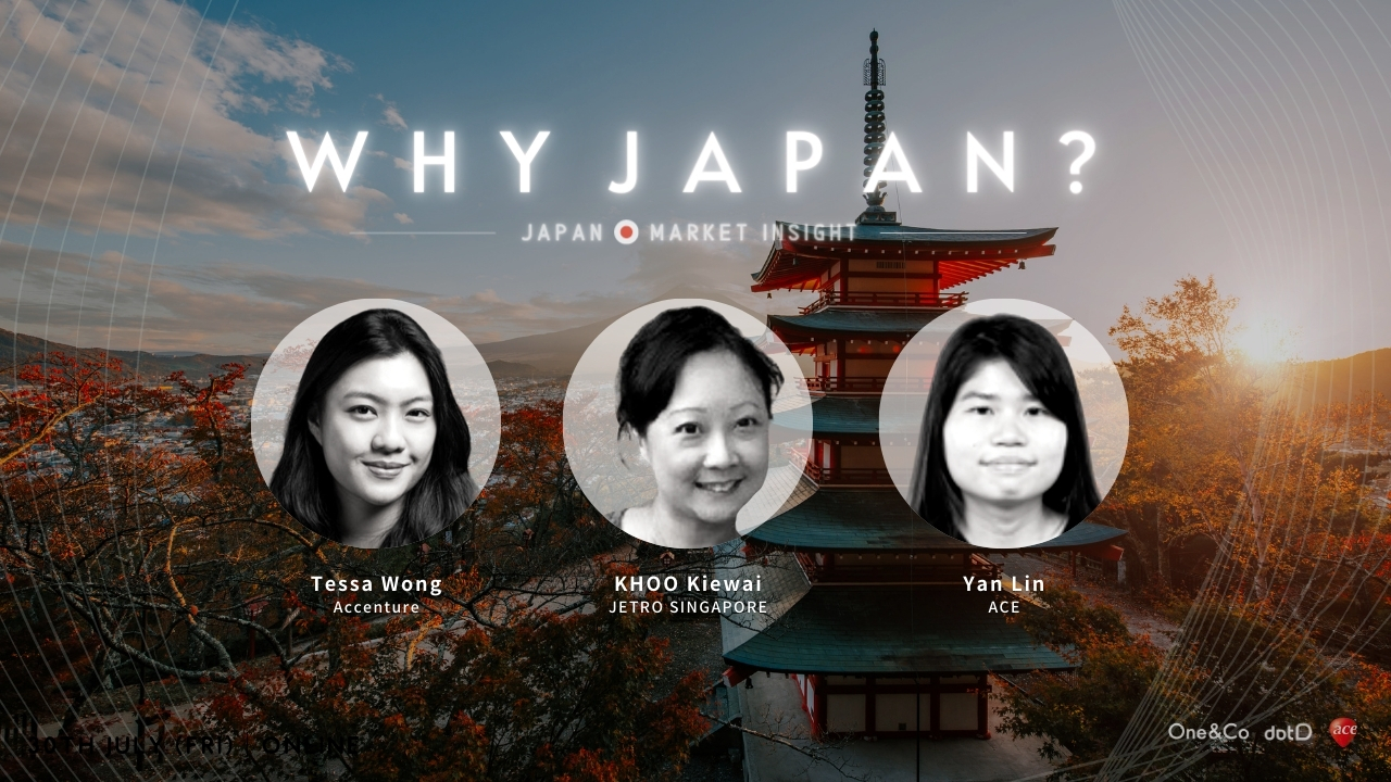 OneDotAce is a series of monthly market insight sessions for startups and companies keen to explore the Japanese market. Co-organised by One&Co, ACE (Action Community for Entrepreneurship), and dotD, OneDotAce hopes to highlight Japan as a potentially attractive market, and support local startups by providing market trends and insights into the Japanese economy.