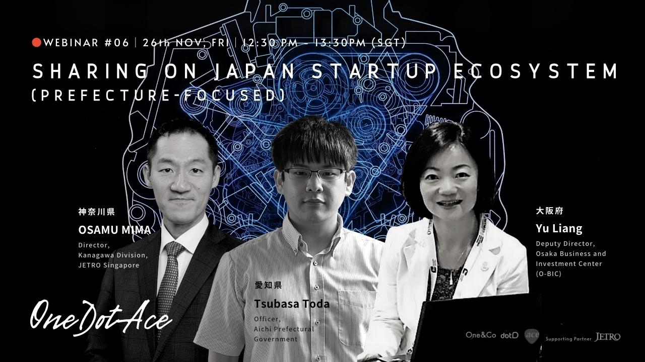 Hear from Osamu Mima (Director, Kanagawa Division, JETRO Singapore), Yu Liang (Deputy Director, Osaka Business and Investment Center (O-BIC)), and Tsubasa Toda (Officer, Aichi Prefectural Government) as they share about the startup ecosystems and the different kinds of support available for international startups in their respective prefectures.