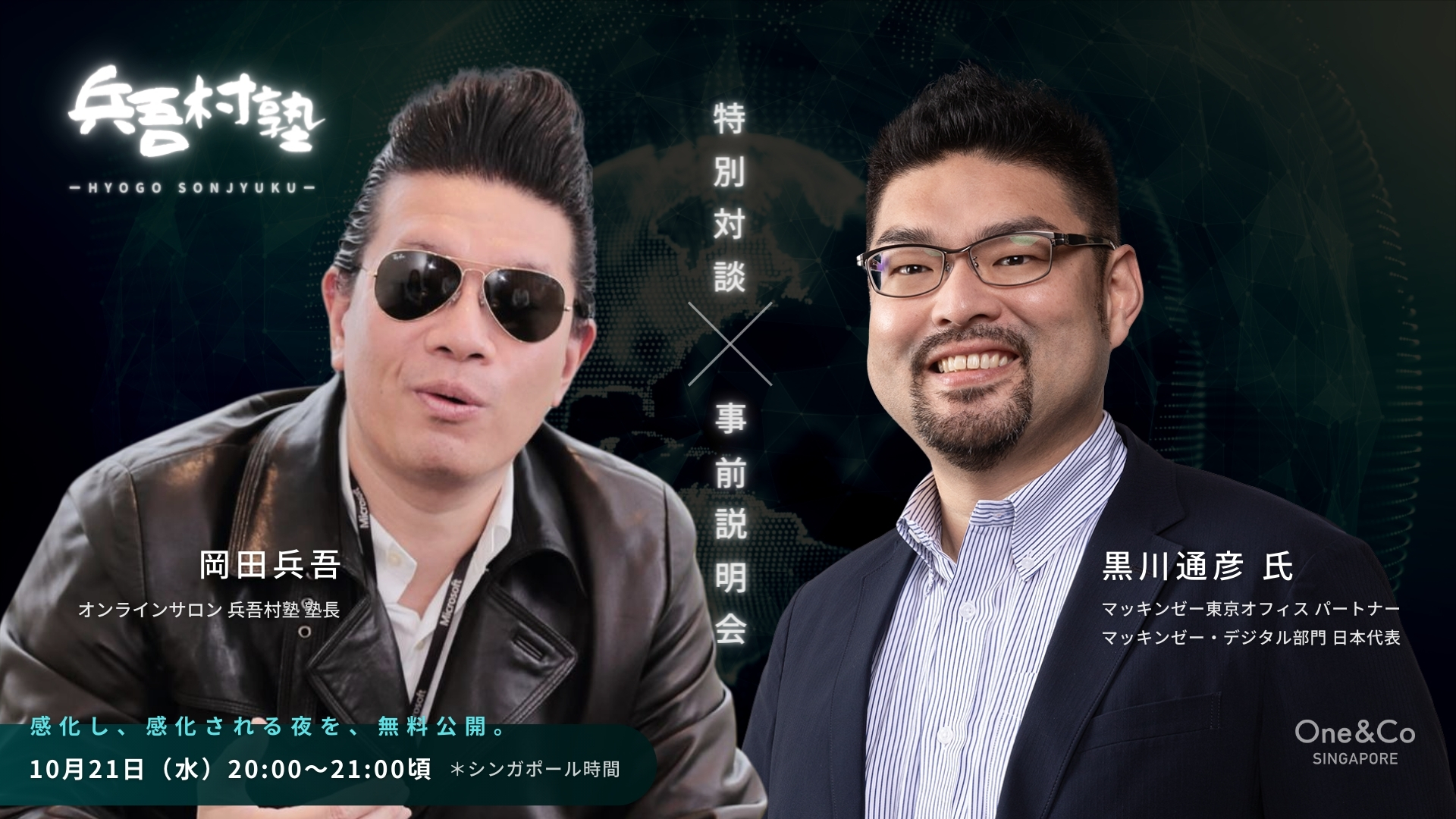 【兵吾村塾 特別対談】マッキンゼー・デジタル日本代表 黒川氏が登場!10月21日(水)、無料公開します。兵吾村塾の事前説明会も同時開催。感化し感化される夜へ。