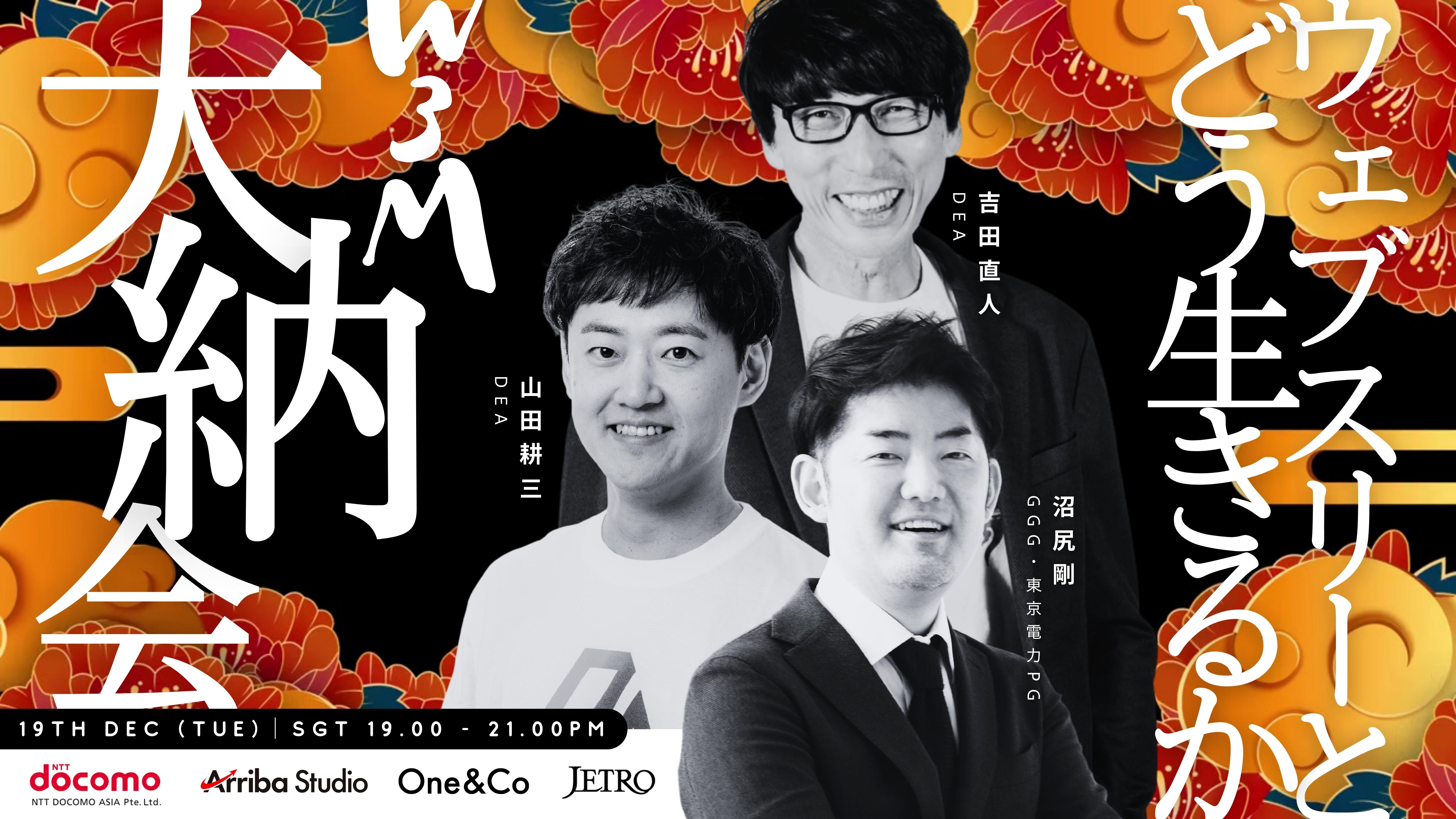 One&Co入居企業でもあるNTT DOCOMO ASIA Pte. Ltd.(以下ドコモアジア)と Web3アクセラレーターであるArriba Studio Pte. Ltd.(以下アリーバ)、日本政府機関であるJETRO Singapore、そしてOne&Coは、第4回となる「Web3 Meetup in Singapore(以下W3M)」を、12月19日(火)に「大納会」として共催することに決定しました。